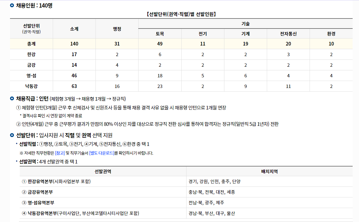 2022년 한국수자원공사 상반기 일반직 신입 인턴사원 일반 공채