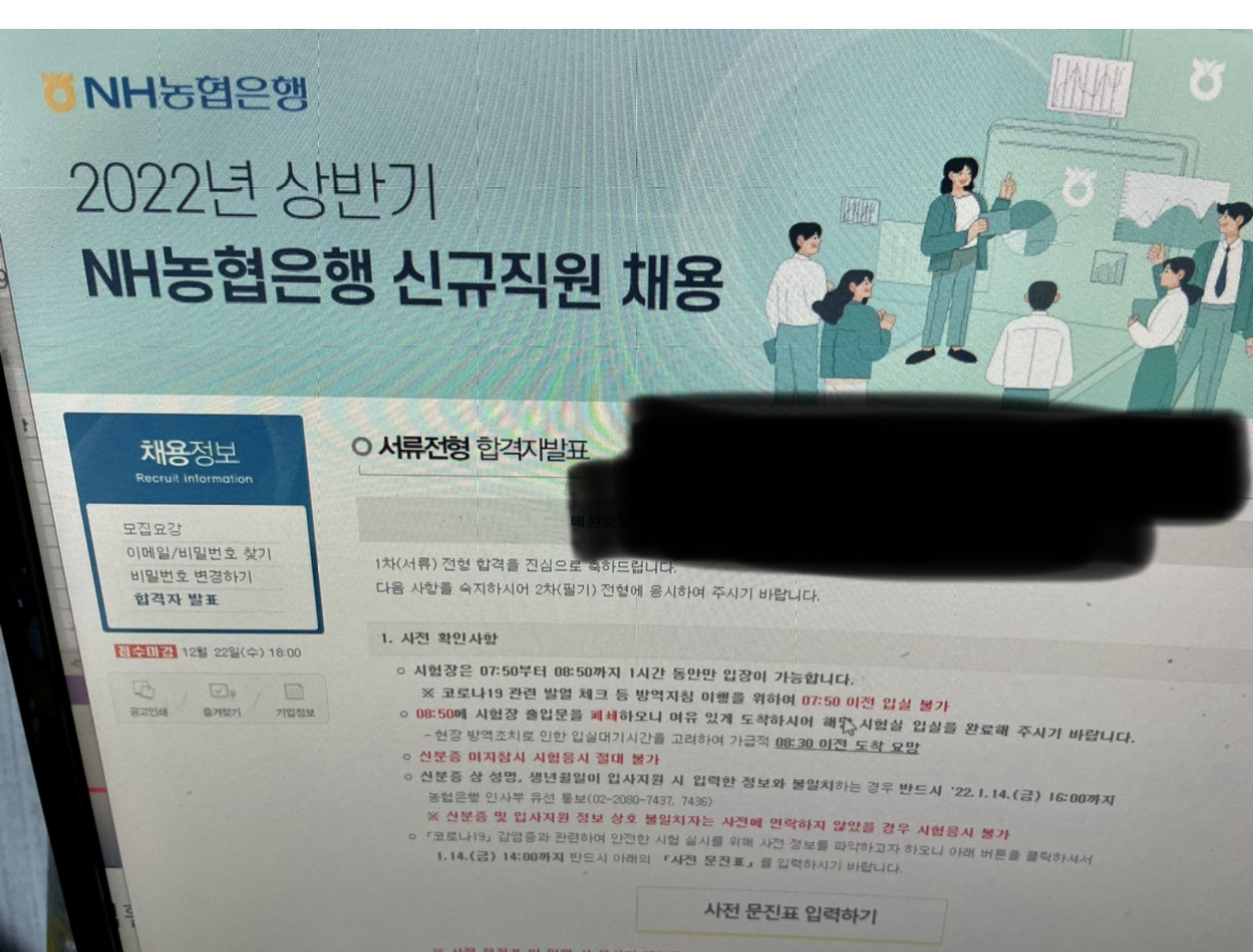2022년 상반기 NH농협은행 신규직원 서류합격