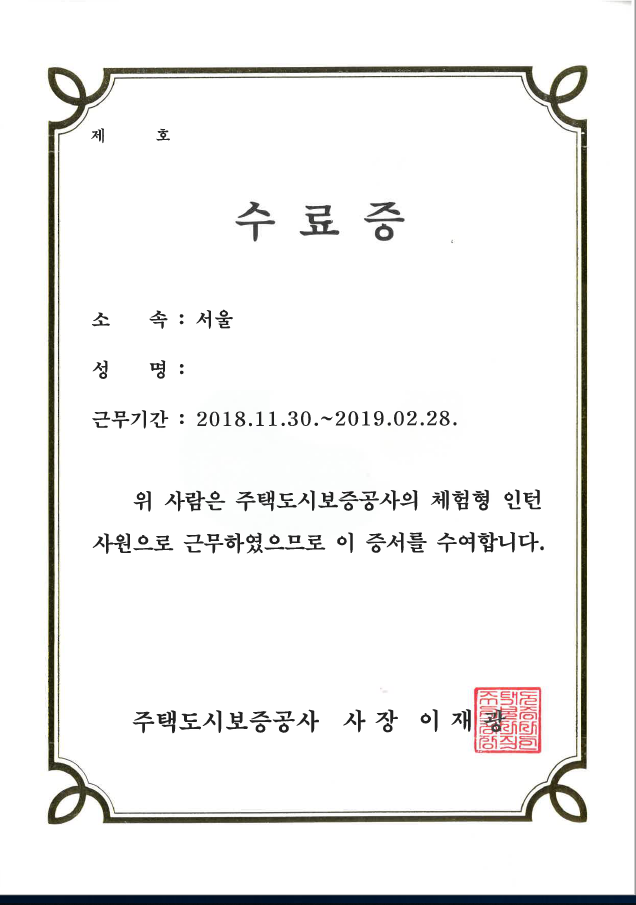 주택도시보증공사 체험형 인턴 소감
