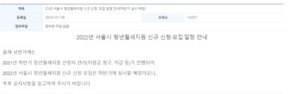 2022년 서울시 청년월세지원 신규 신청 상반기 미실시, 하반기 실시 예정