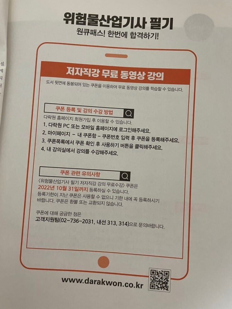 위험물산업기사 필기 저자직강 강의 무료 수강 쿠폰이 있다.